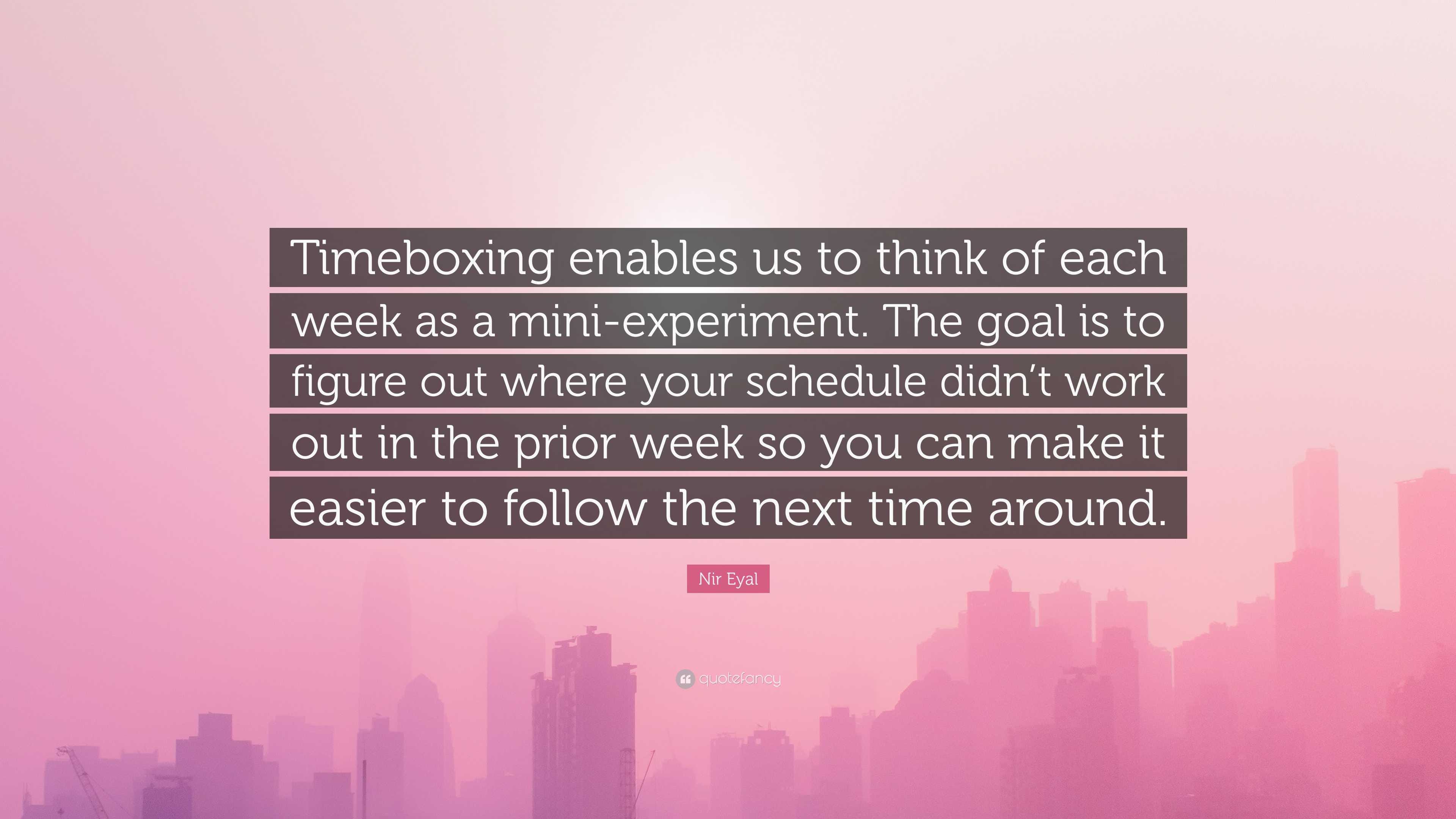 "يمكّننا نظام Timeboxing من التفكير في كل أسبوع باعتباره تجربة صغيرة. الهدف هو معرفة المواضع التي لم ينجح فيها جدولك في الأسبوع السابق حتى تتمكن من تسهيل المتابعة في المرة القادمة.